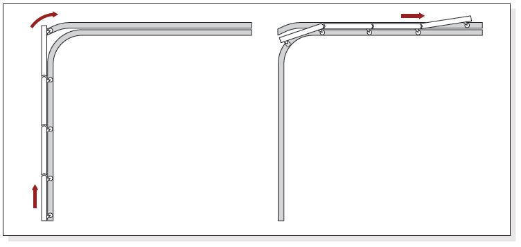 Porten kräver 95 mm bred monteringsyta på innerväggen på varje sida av portöppningen för portens väggskenor. Ovanför portöppningen krävs en viss överhöjd som beror på
