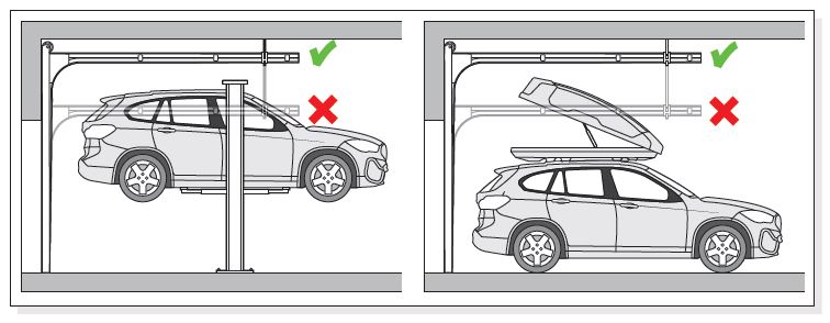 Har du ett garage med flera portöppningar med olika höjd rekommenderar vi att du monterar portar med den högsta höjden även i de lägre portöppningarna.